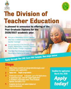 The SVGCC, in collaboration with The UWI Cave Hill Campus, will be offering the Post-graduate Diploma in Education (Secondary) for the 2026/2027 academic year. Eligibility...